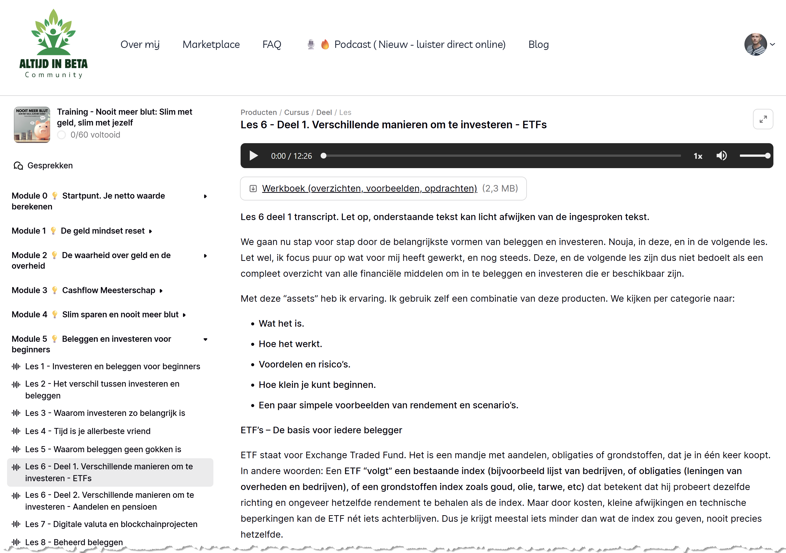 Hoewel verreweg de meeste personen kiezen voor de community optie vanwege de extra opties kan de training natuurlijk ook los worden aangeschaft. Voor eenmalig € 247 krijg je een jaar lang toegang tot alle modules en extra's. Dat is inclusief alle audio bestanden, de werkboeken en de volledige transcripts.