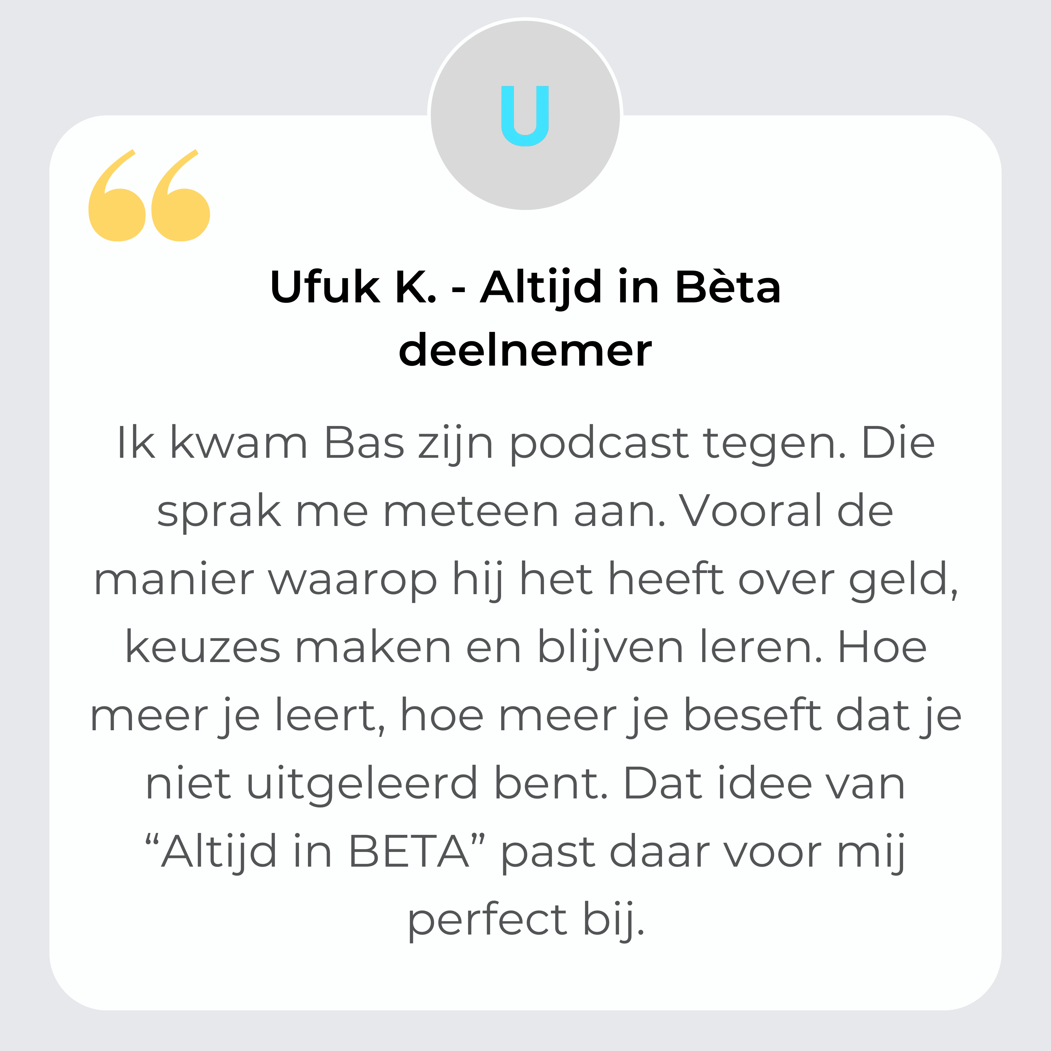 We zijn nooit “af”. Niet als mens, niet in ons werk, niet financieel. Dus, Altijd in Beta (een term uit de software wereld). Elke dag kun je iets leren, iets aanscherpen, iets verbeteren.