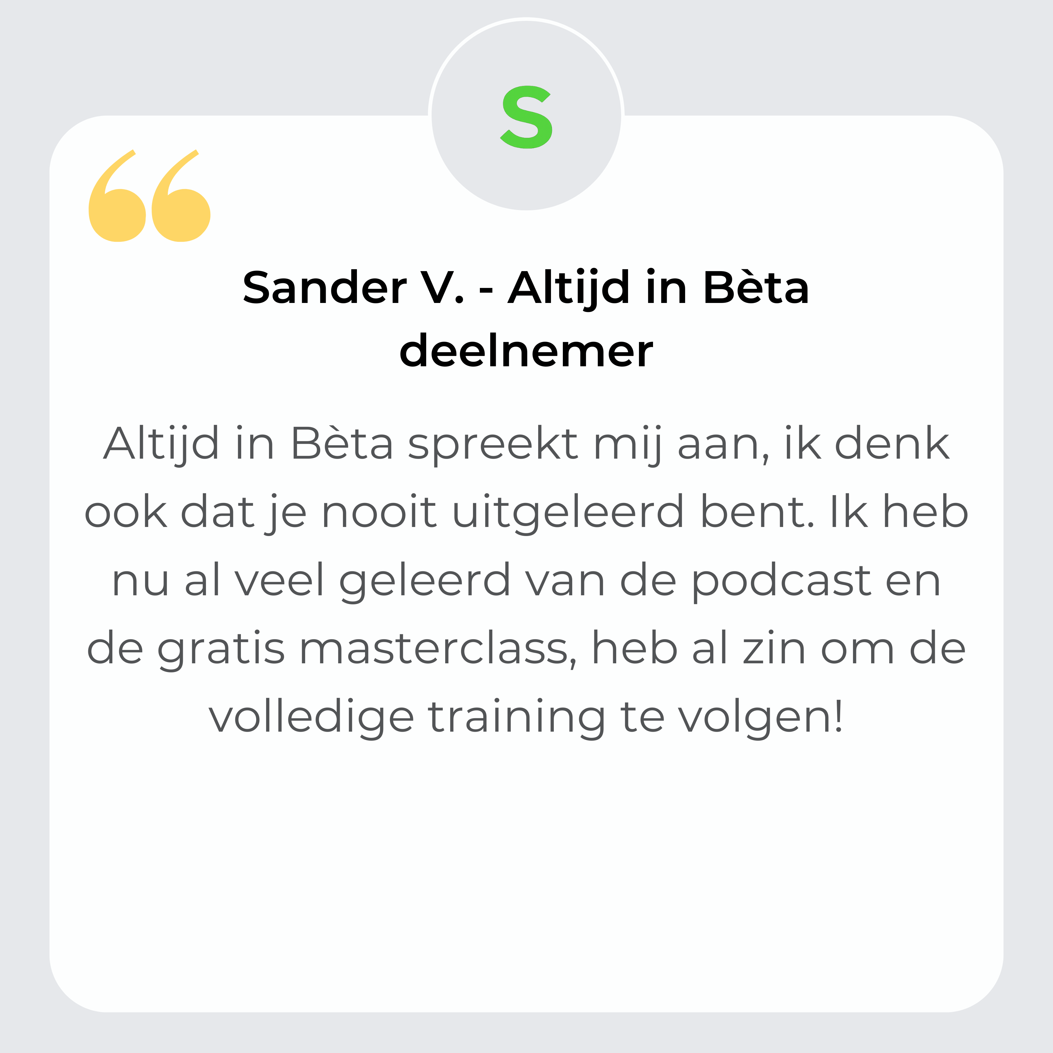 De community en de Bèta Briefing helpen je daarbij. Ze zorgen voor structuur, inspiratie en richting, zodat alles wat je in deze training leert makkelijker blijft hangen én je het daadwerkelijk volhoudt.