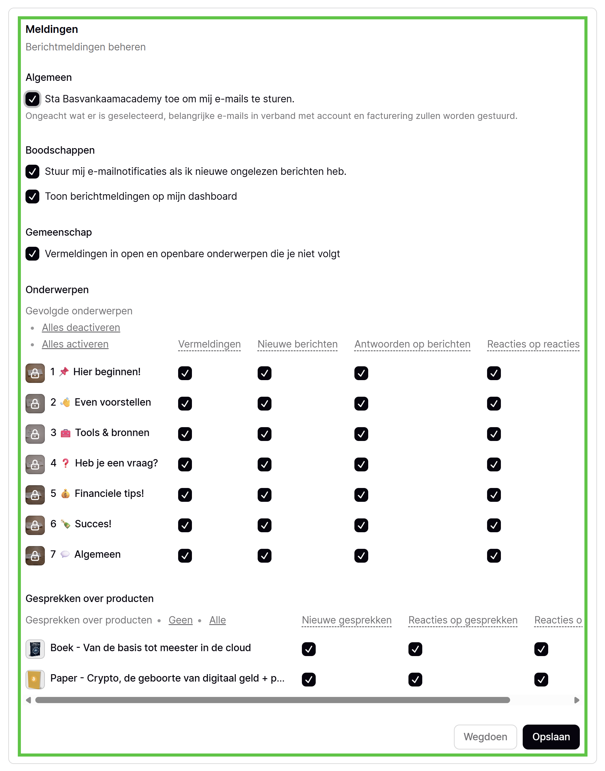 Door op de naam van een onderwerp te klikken treed je binnen en heb je verschillende opties.