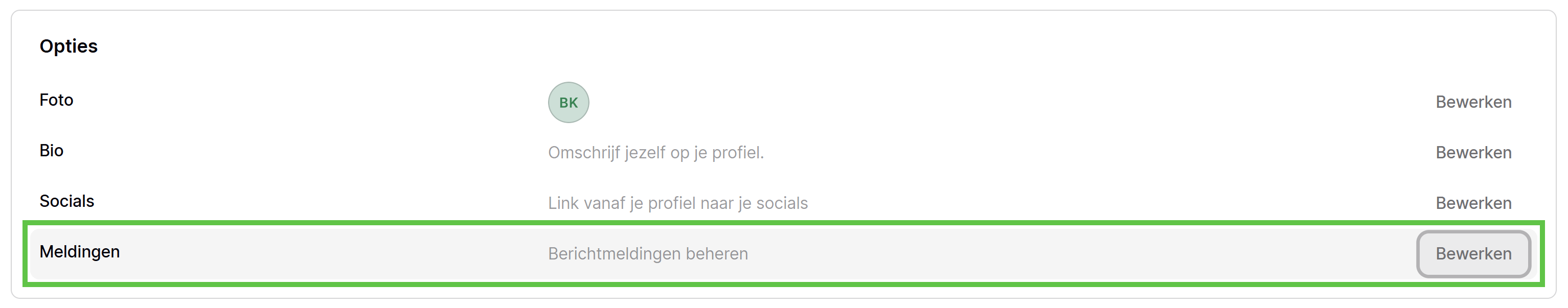 Daar vindt je onder andere de optie om "Meldingen" te beheren.